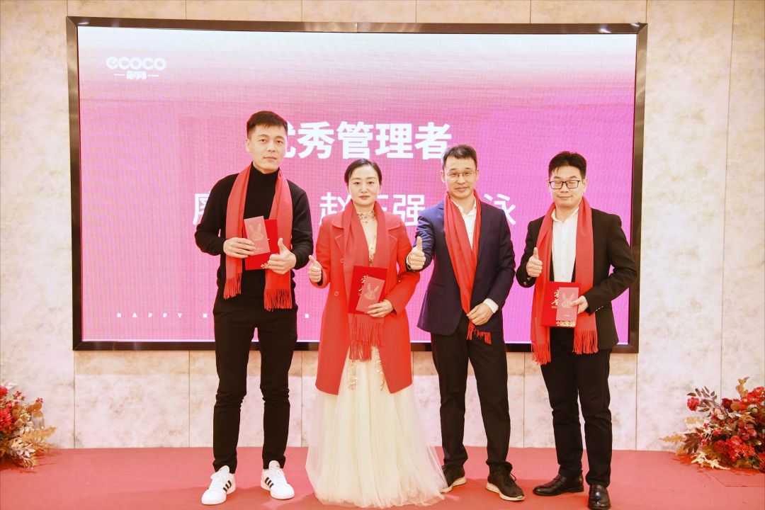表彰结束后,公司总经理温总、公司副总经理曹总以及公司首席顾问周老师、张老师和公司各部门领导上台为家宴祝酒,向意可可家人表达了最美好的祝愿,家宴就此正式开始。